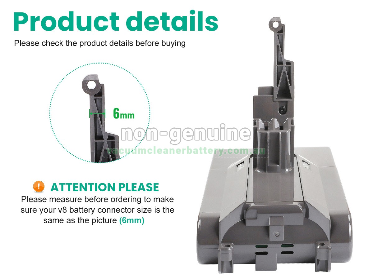 Crafted from high-quality ABS V0 flame-retardant housing, this Dyson replacement battery offers triple protection against fire, dust, and moisture. The gold-plated charging contacts improve conductivity, reduce energy loss, and increase charging efficiency. Whether you’re cleaning dusty floors, humid bathrooms, or car interiors, the battery remains safe, stable, and long-lasting — built for years of reliable use.