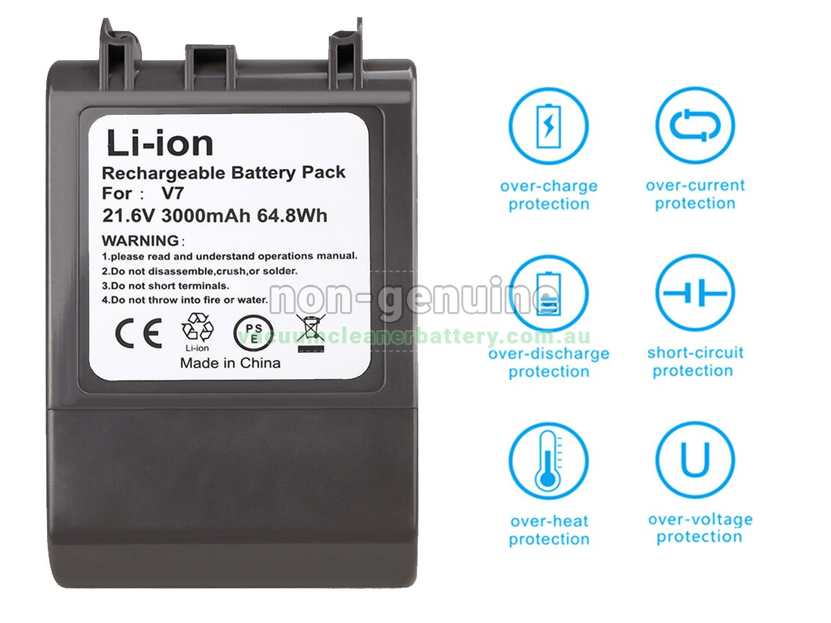 The Dyson V7 CORDLESS VACUUM replacement battery features upgraded high-rate power cells combined with dual IC + MOS intelligent control chips. This advanced design ensures a stable voltage output — no sudden shutdowns, no power loss.